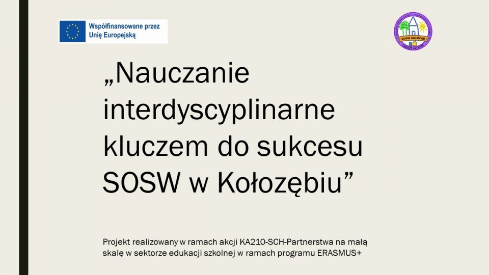 Interdyscyplinarne nauczanie kluczem do sukcesu SOSW w Kołozębiu-Project evaluation