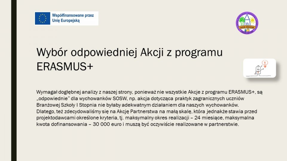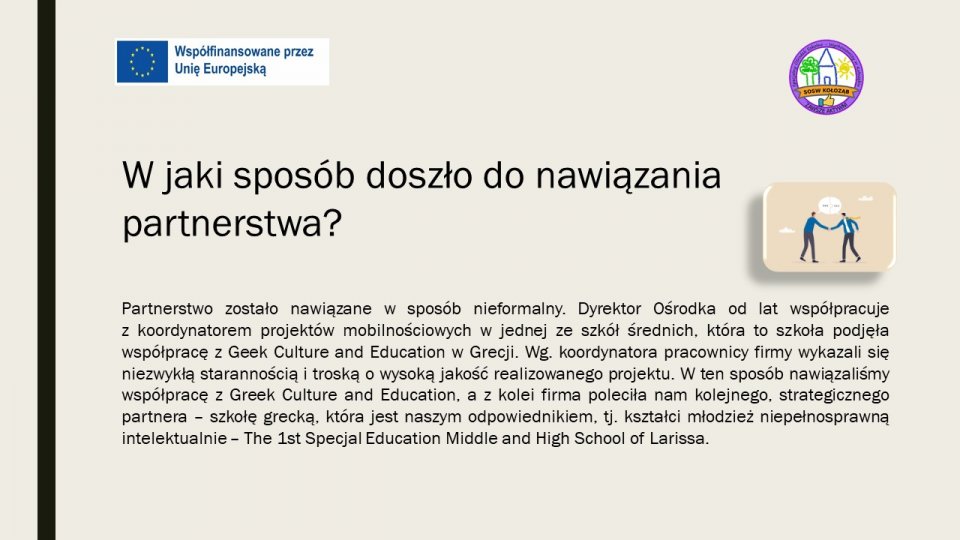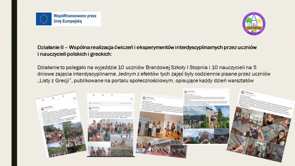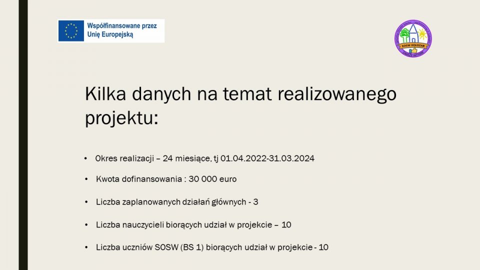 Poniżej przedstawiamy raport z ewaluacji oraz prezentację dotyczącą działań i rezultatów projektu "Interdyscyplinarne nauczanie kluczem do sukcesu SOSW w Kołozębiu”, realizowanego w Specjalnym Ośrodku Szkolno-Wychowawczym w Kołozębiu w ramach Programu Erasmus+ AKCJA 2 (KA210-SCH) Partnerstwa na rzecz współpracy, Partnerstwa na małą skalę